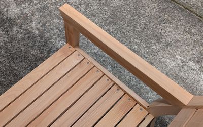 Last week, I competed construction of the Rockler Rockler Modern Patio Love Seat Plan with Templates project. We have a couple of iron chairs next to our garage that we use all the time, and I was looking to replace them with something more comfortable and much better looking. Here's the completed project; I used Cypress wood for my version of it: