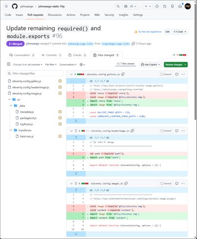 After publishing the plugin, I tried to implement it on this site but the site crashed and burned (wouldn't build). I suddenly remembered that I never completed this site's upgrade to Eleventy 3.x. I upgraded all of my other sites, but for this one I kept running into module problems, so I reverted it to Eleventy 2.x.